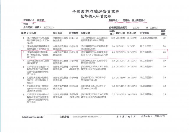 106學年度遴派教職員參與政府機關辦理之環境教育相關研習活動