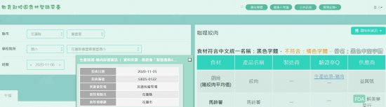 下方的搜尋欄進行查詢本校食材來源