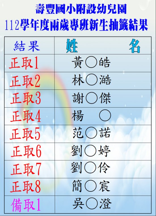 112學年度2歲專班抽籤結果