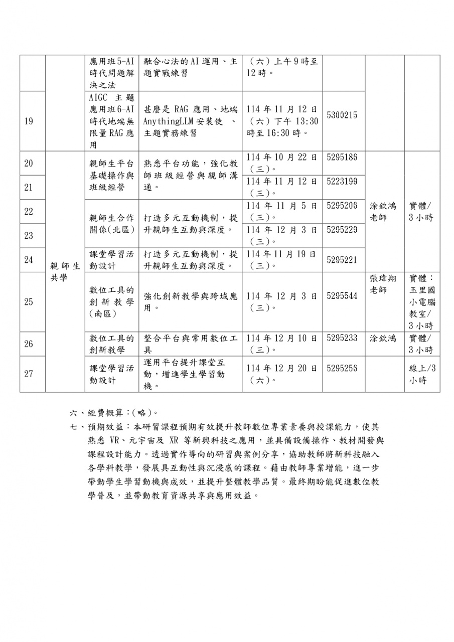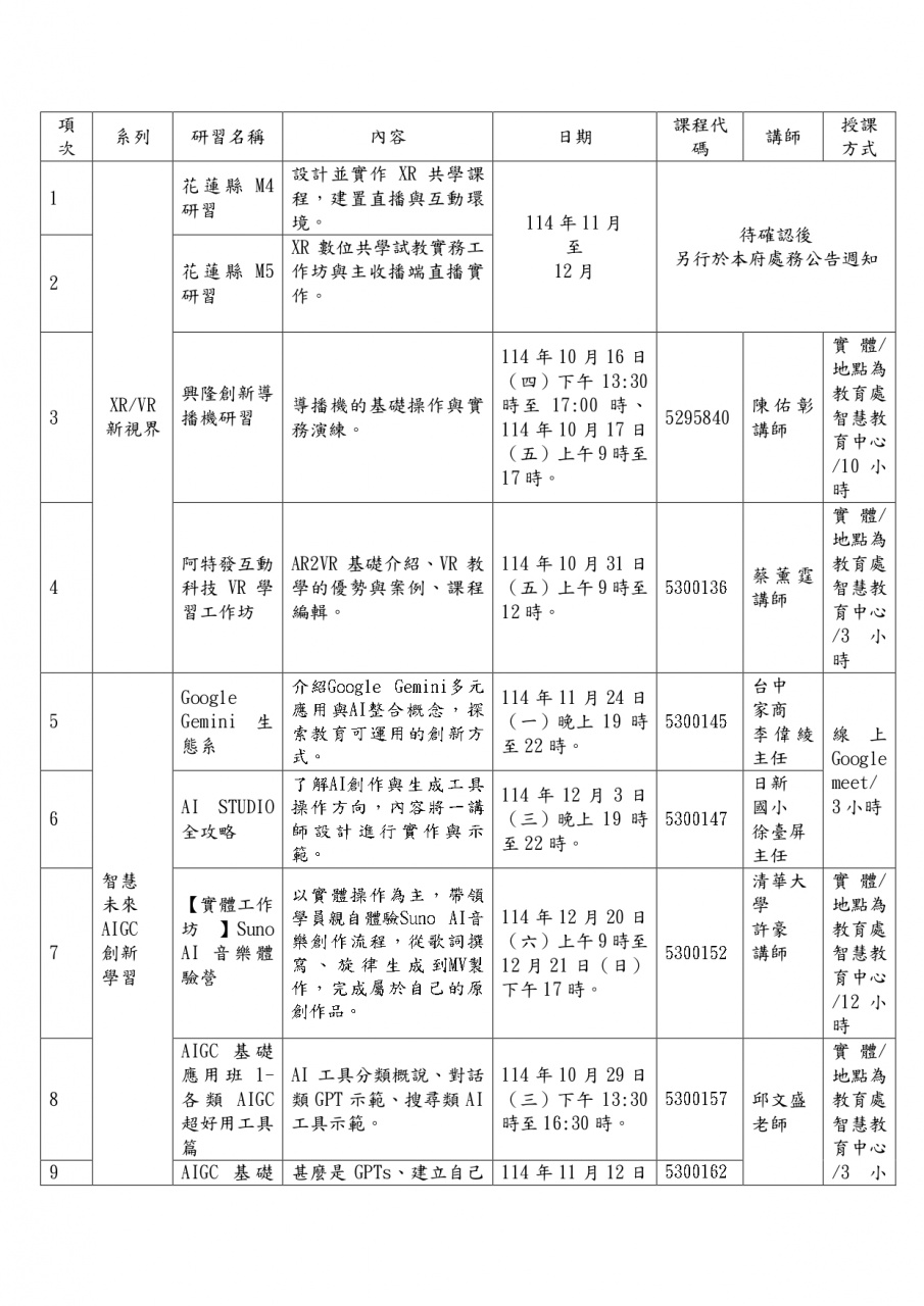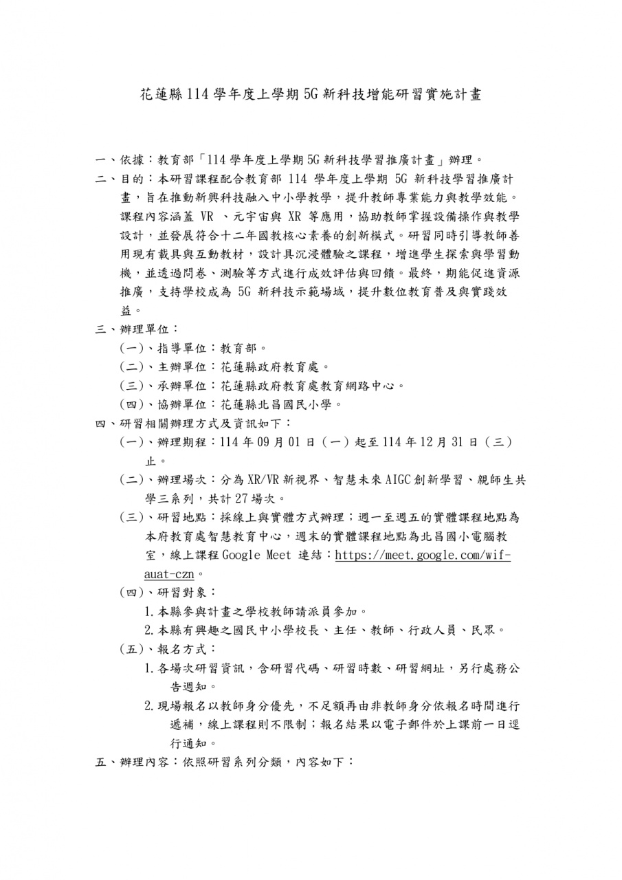 轉知花蓮縣 114 學年度上學期 5G 新科技增能研習實施計畫,有興趣教師可逕自報名參與。